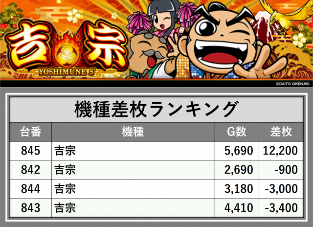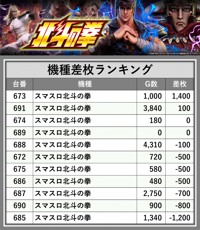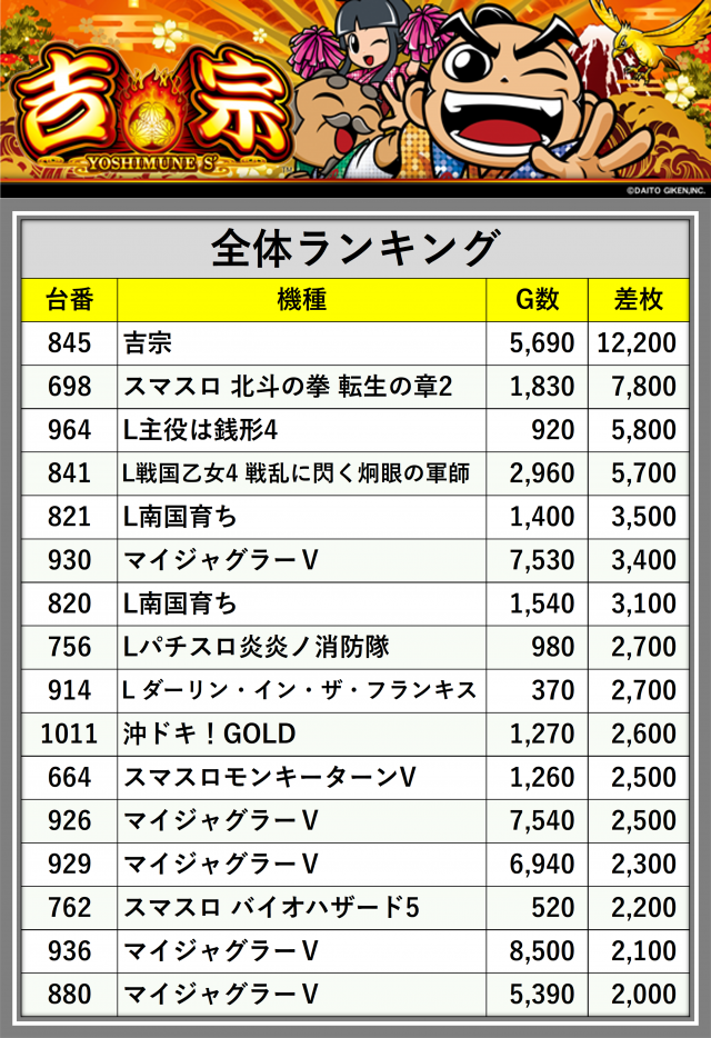 ※差枚数順に掲載しています