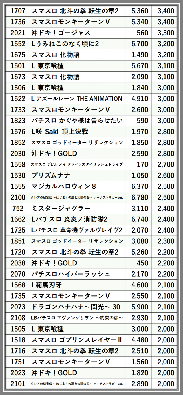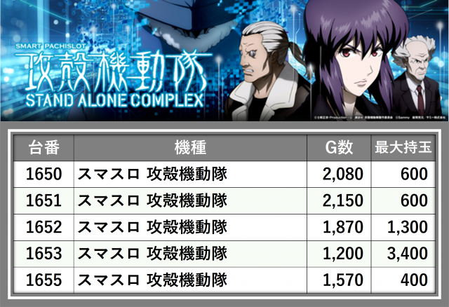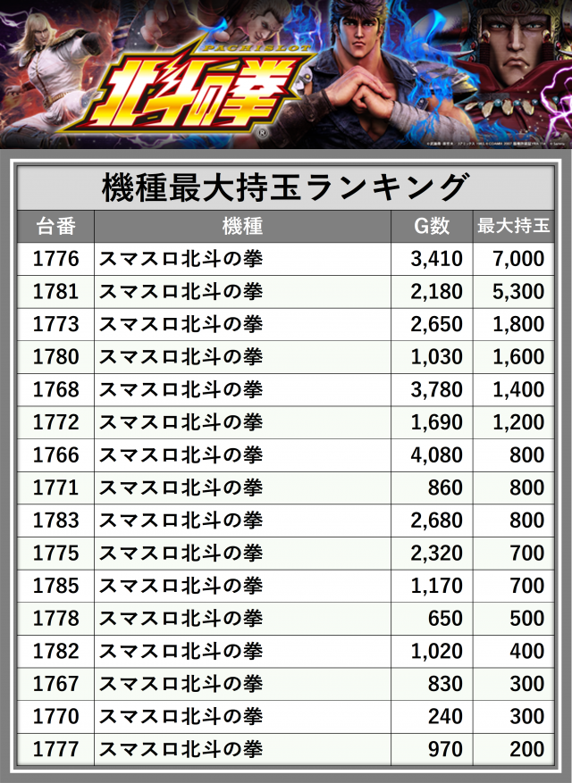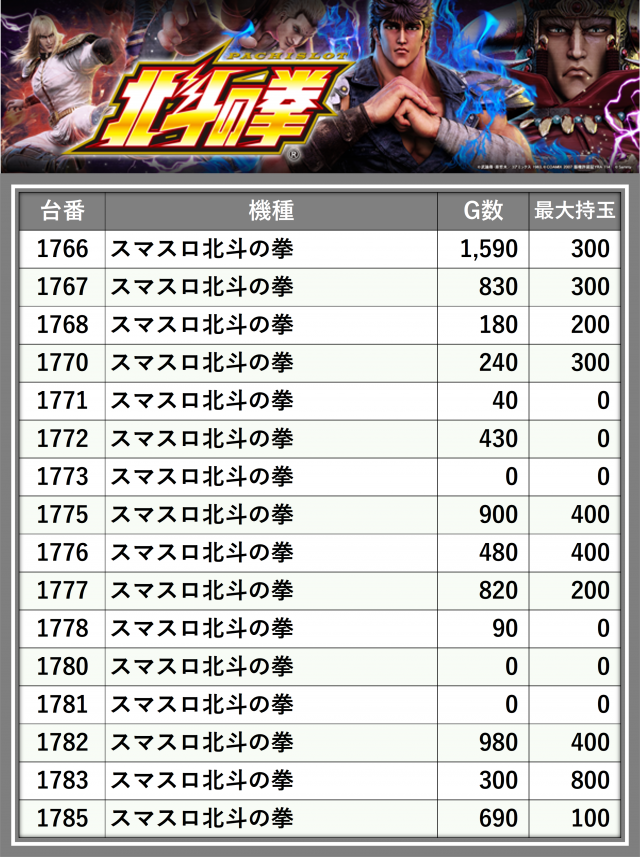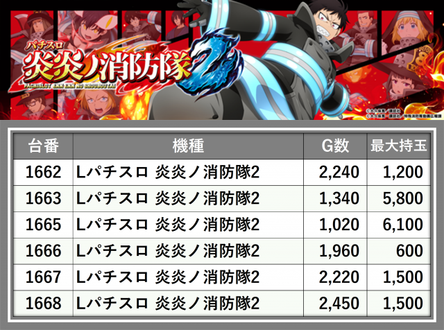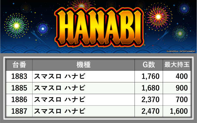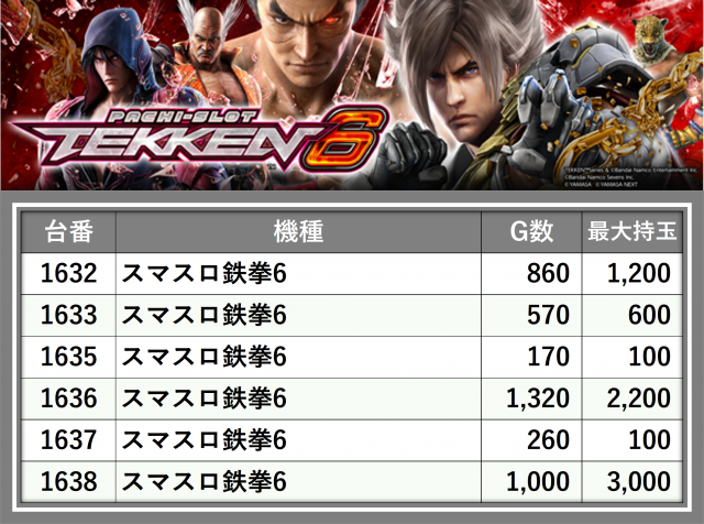 ※台番順に掲載しています