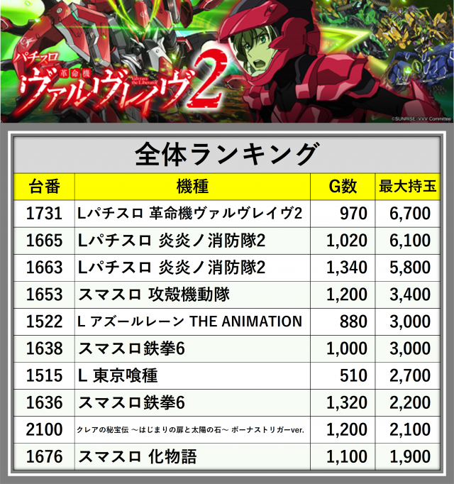 厳選された取材対象機種をはじめ、その他スロット全体から好記録が飛び出した!プレイヤーが楽しんだ1日を下記データにて振り返ってみて欲しい。