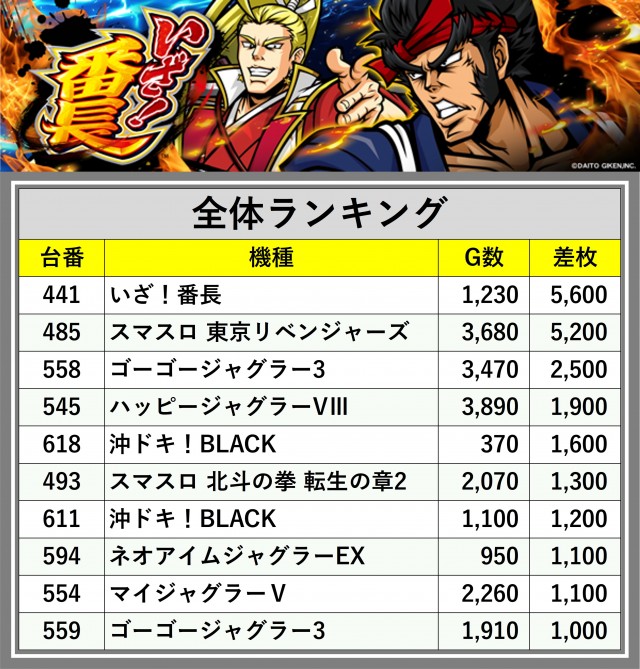 ※差枚数順に掲載しています