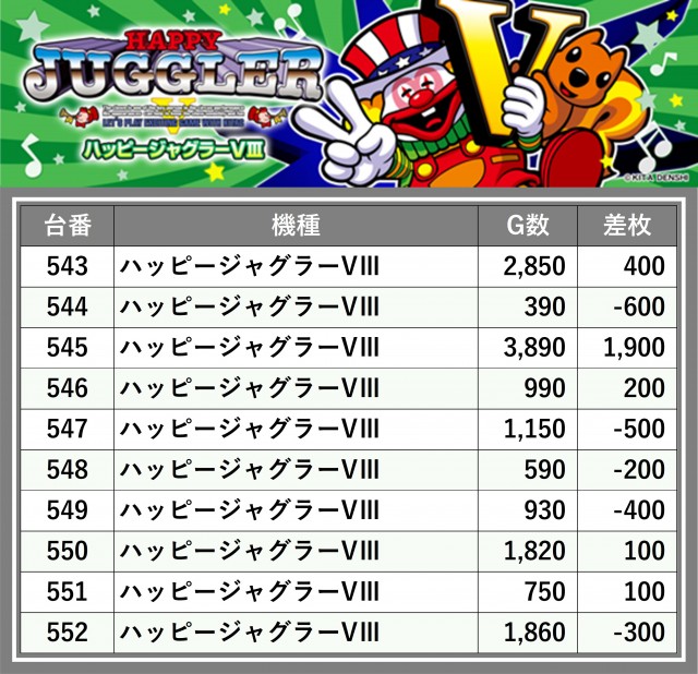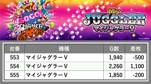 厳選された取材対象機種をはじめ、その他スロット全体から好記録が飛び出した!プレイヤーが楽しんだ1日を下記データにて振り返ってみて欲しい。