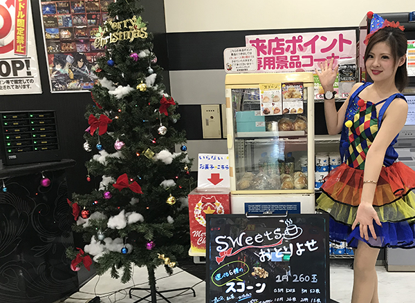 また、クリスマスの装飾が施されたカウンターや賞品コーナーも魅力的なポイント。季節感を演出することで、よりいっそう雰囲気が明るくなっているように思いました♥