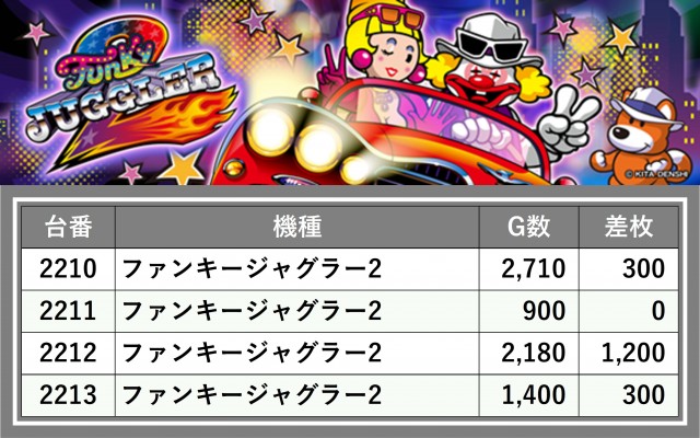 厳選された取材対象機種をはじめ、その他スロット全体から好記録が飛び出した!プレイヤーが楽しんだ1日を下記データにて振り返ってみて欲しい。
