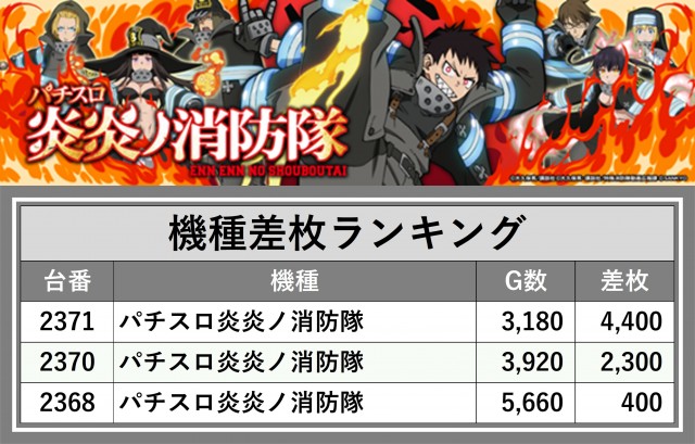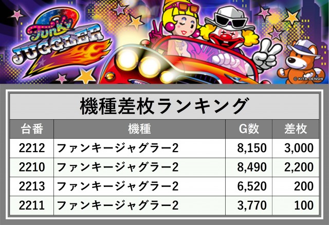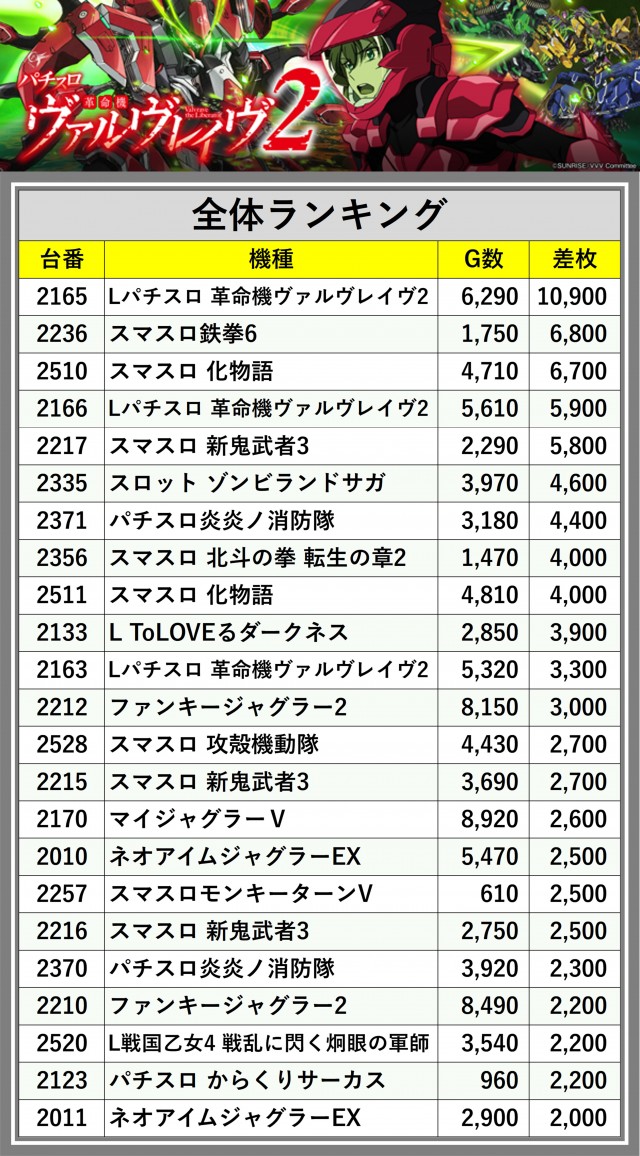 ※差枚数順に掲載しています