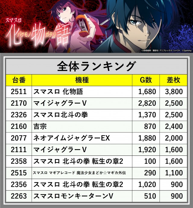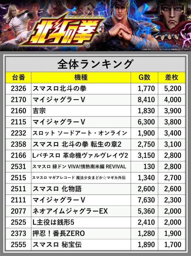 厳選された取材対象機種をはじめ、その他スロット全体から好記録が飛び出した!プレイヤーが楽しんだ1日を下記データにて振り返ってみて欲しい。