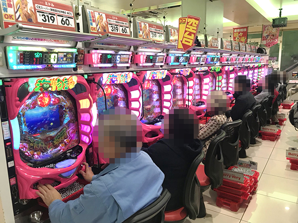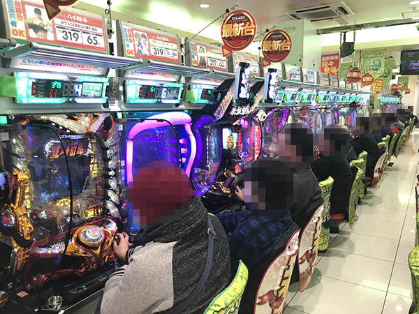 1円パチンコは全体的に高稼働で、空き台を探すのがやっとという状況。各人、好きな機種を見つけ出し、心から楽しんでいたように思う。
