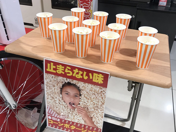 取材当日はポップコーンの無料配布を開催。長時間遊技でお腹を空かせているプレイヤーからは、かなり好評なようだった。