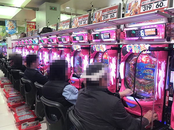 ほかに、5円パチスロの「押忍!番長3」や「ハナビ」など、様々な機種で活気のあるシーンを目にしている。