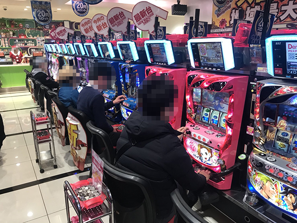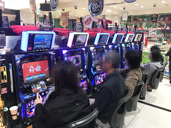 20円パチスロでは、「押忍!番長3」や「政宗2」、「パチスロ北斗の拳 転生の章」が盛況。機種のポテンシャルを最大限に引き出すプレイヤーたちが目立っていた。