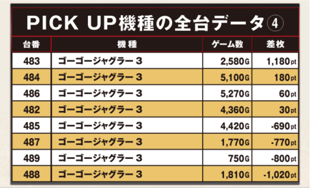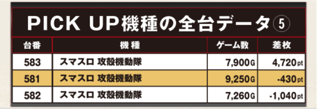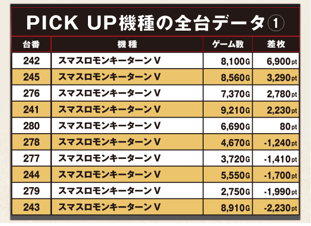 PiCK UP機種の全台データ