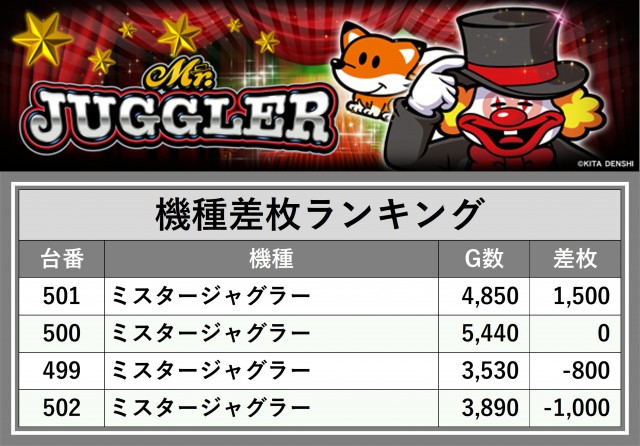 厳選された取材対象機種をはじめ、その他スロット全体から好記録が飛び出した!プレイヤーが楽しんだ1日を下記データにて振り返ってみて欲しい。