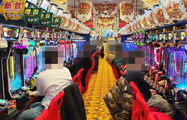 リニューアルオープンを迎えたこの日は、パチンコとパチスロのレイアウトを大幅に変更。人気機種や最新機種も導入されており、注目を集めていた。