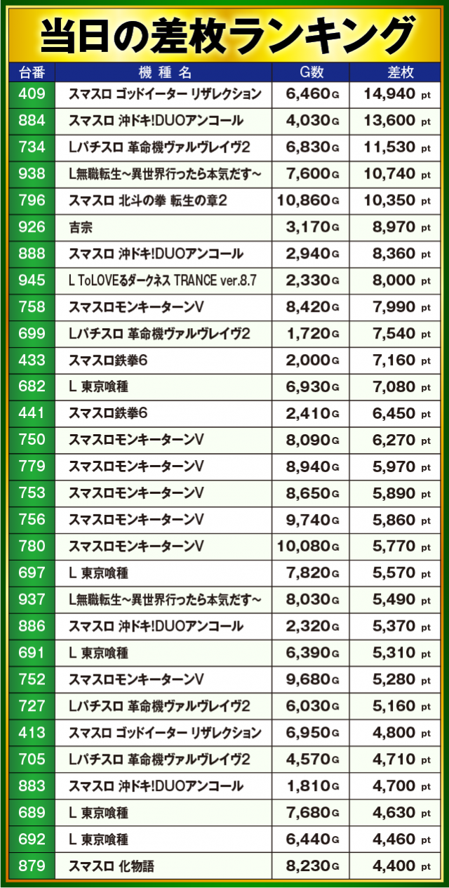※差枚数順に掲載しています