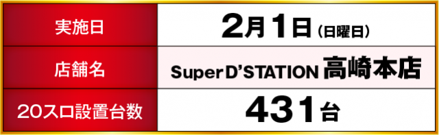 Super D’STATION高崎本店 差枚ランキング(2月1日)