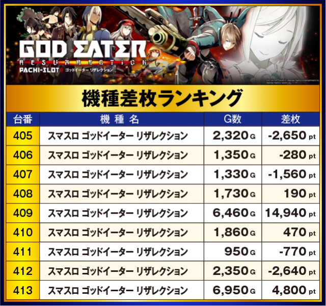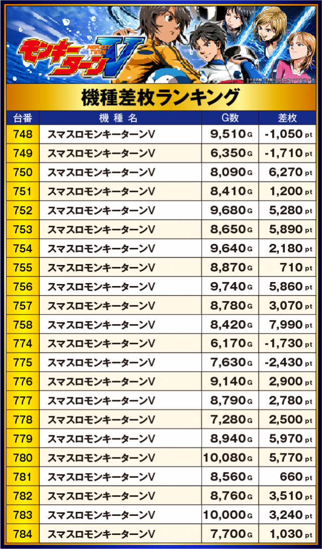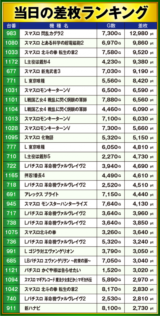 レポートの最後に「Super D’STATION前橋大利根店」の差枚ランキングも掲載!