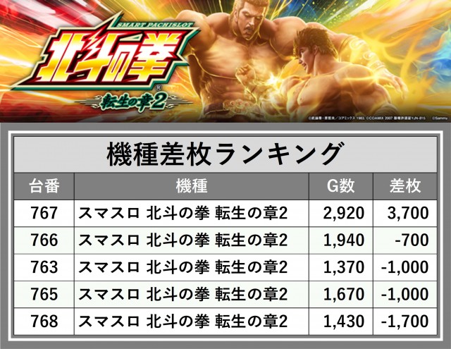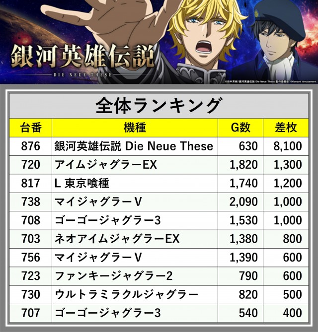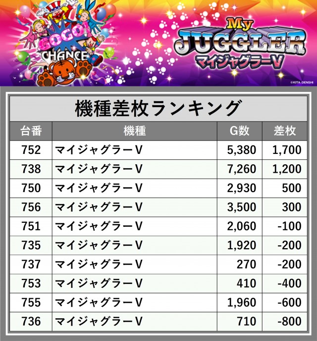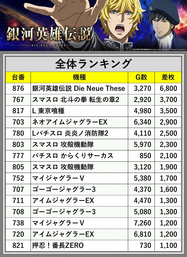 ※差枚数順に掲載しています