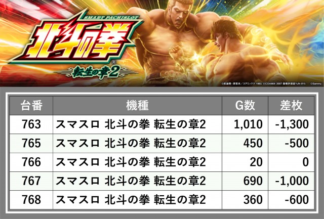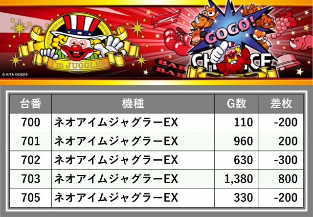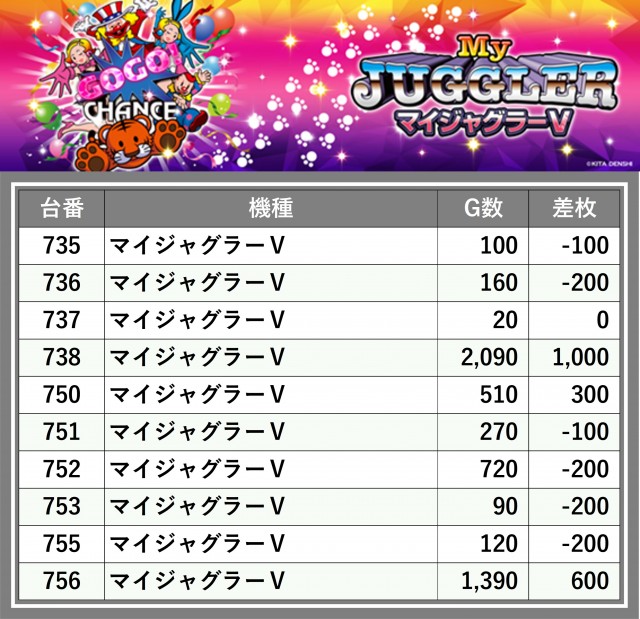 厳選された取材対象機種をはじめ、その他スロット全体から好記録が飛び出した!プレイヤーが楽しんだ1日を下記データにて振り返ってみて欲しい。