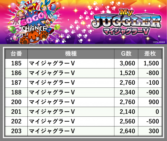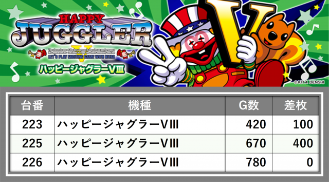 厳選された取材対象機種をはじめ、その他スロット全体から好記録が飛び出した!プレイヤーが楽しんだ1日を下記データにて振り返ってみて欲しい。