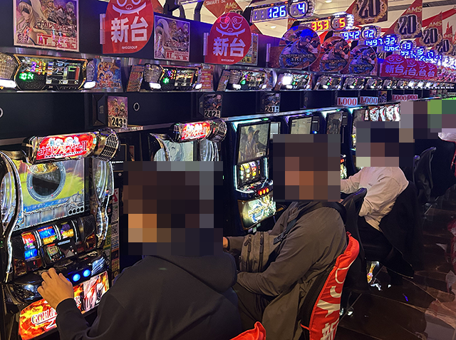 新台の「Lパチスロ 炎炎ノ消防隊2」と「スマスロ ゴブリンスレイヤーⅡ」でも、プレイヤーは遊技を満喫している様子。