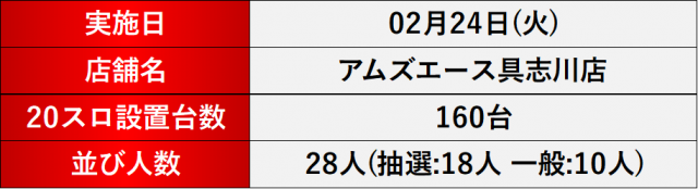2月24日(火) アムズエース具志川店にて、DMMぱちタウンの「格付けスピリッツ」を実施。