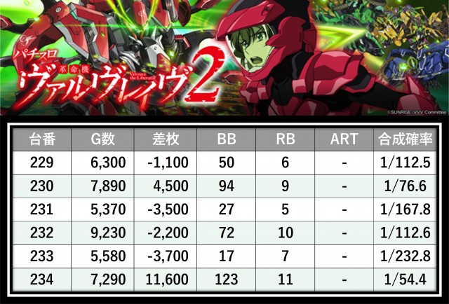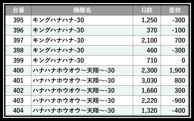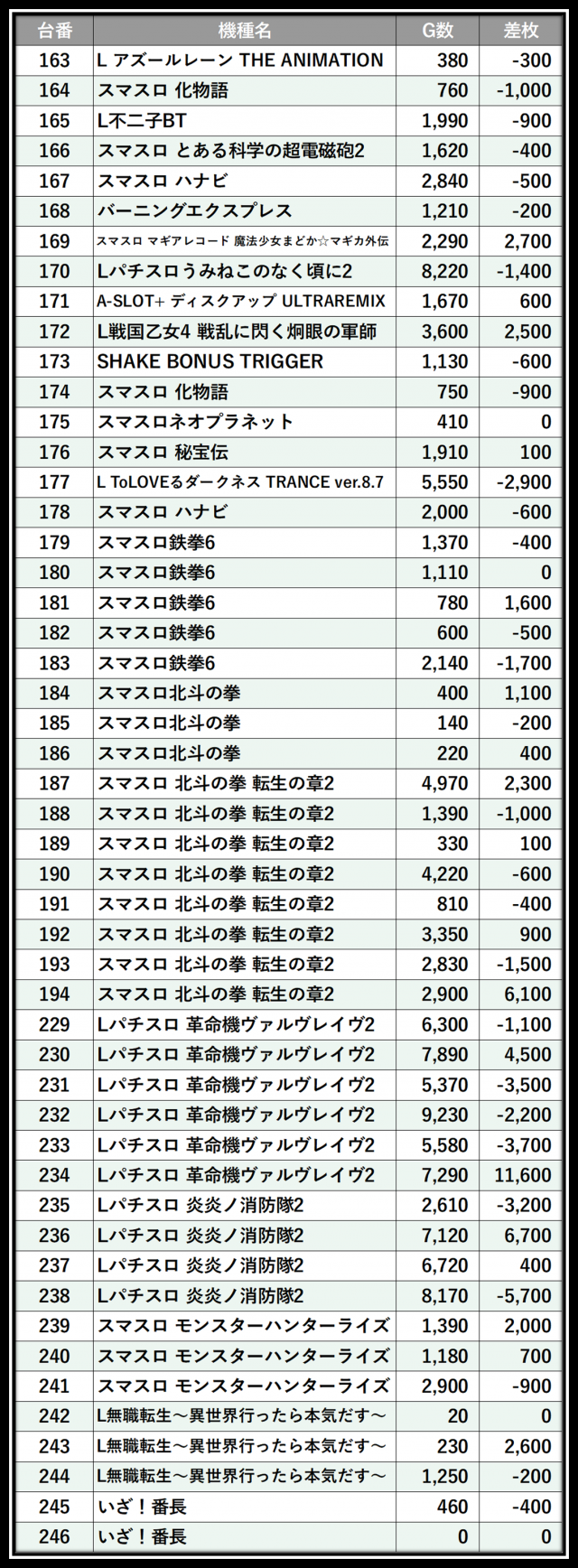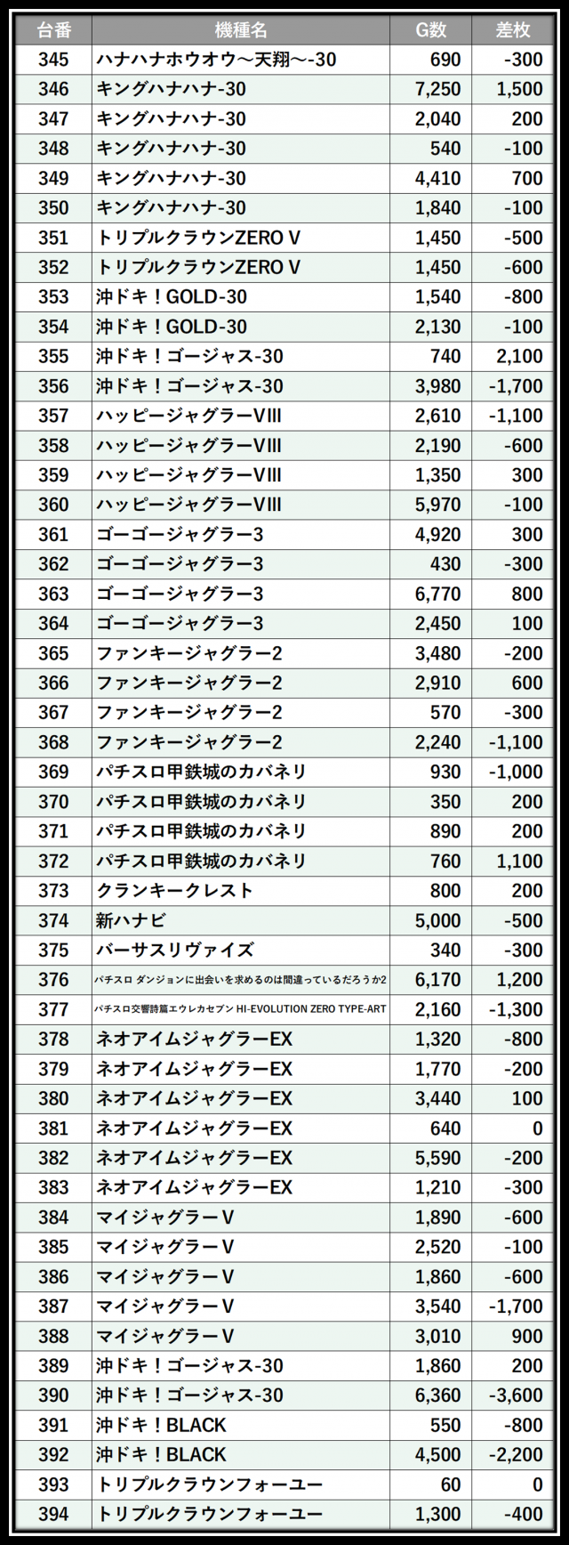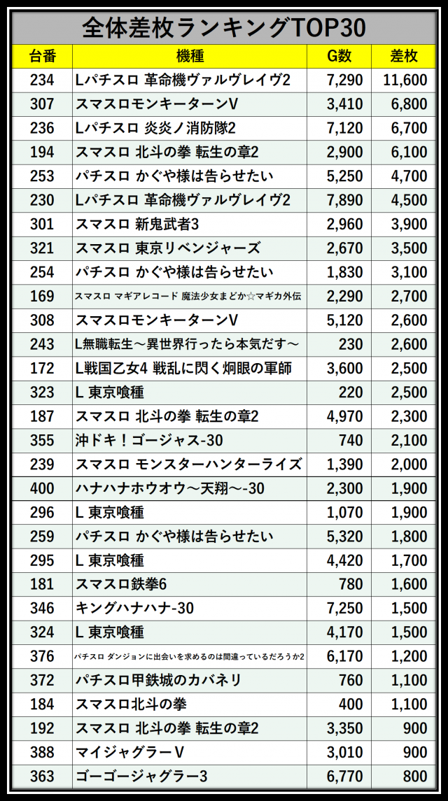 ※差枚数順に掲載しています