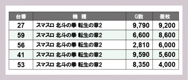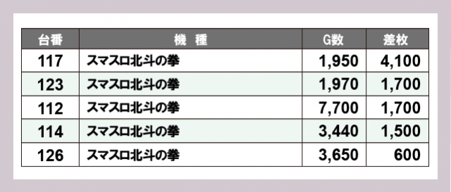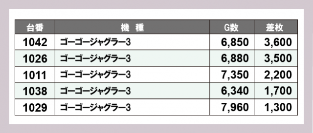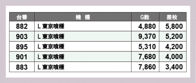 ※差枚数順に掲載しています