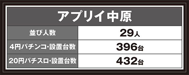2月5日、静岡県静岡市にある「アプリイ中原」へと向かった。今回の取材は、「徹底対抗取材」だ。パチンコ、パチスロともに活気があり、多くの機種に活躍をしている姿があった。
