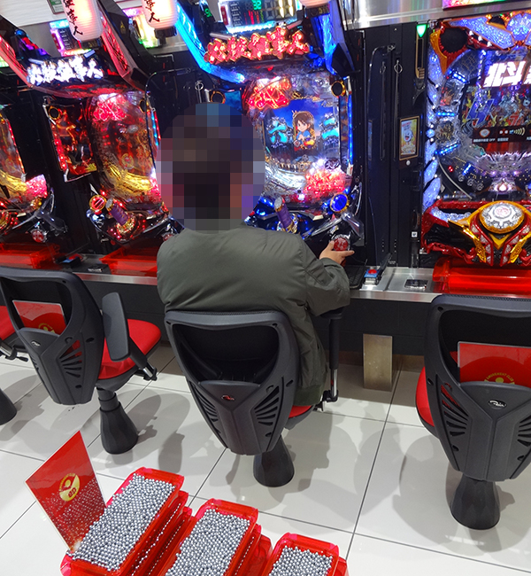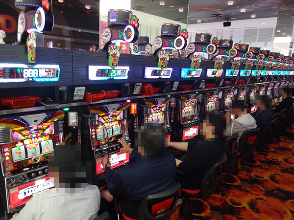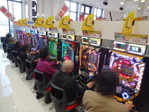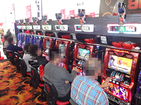 ほかに、「ぱちんこCR真・北斗無双 夢幻闘乱」など遊パチでも満足感を得られているようなプレイヤーの姿が目立ち、シマ全体に華やかな光景が広がっていた。