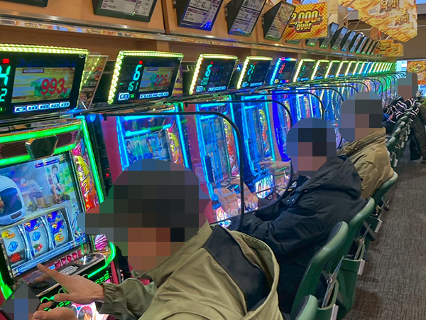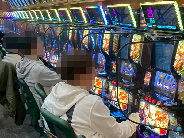 500円/90枚パチスロの稼働も高い。楽しそうにレバーを叩くプレイヤーの姿を複数目撃している。