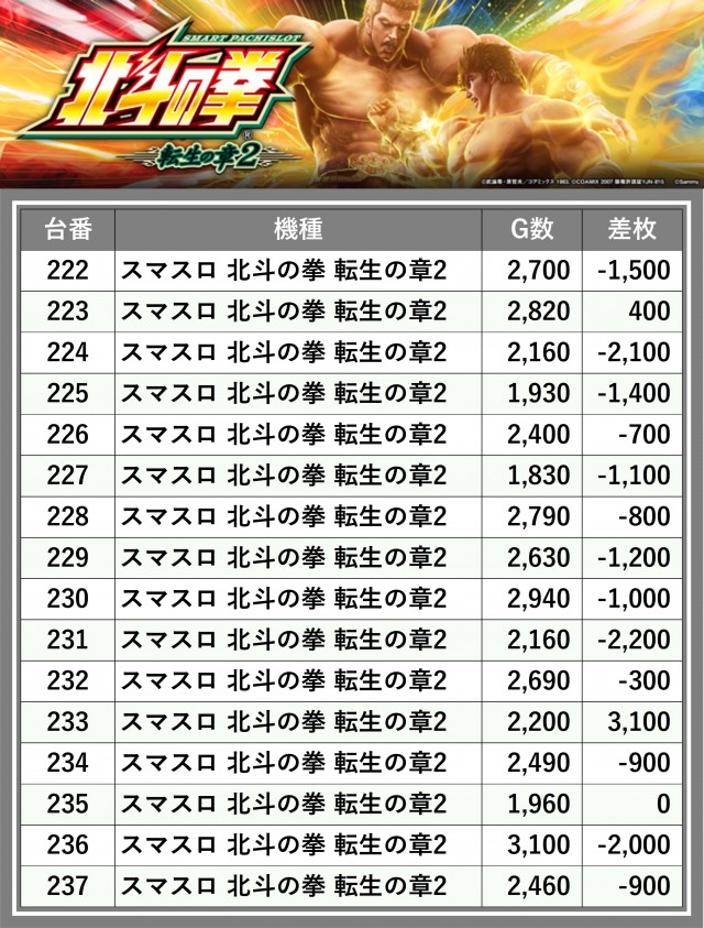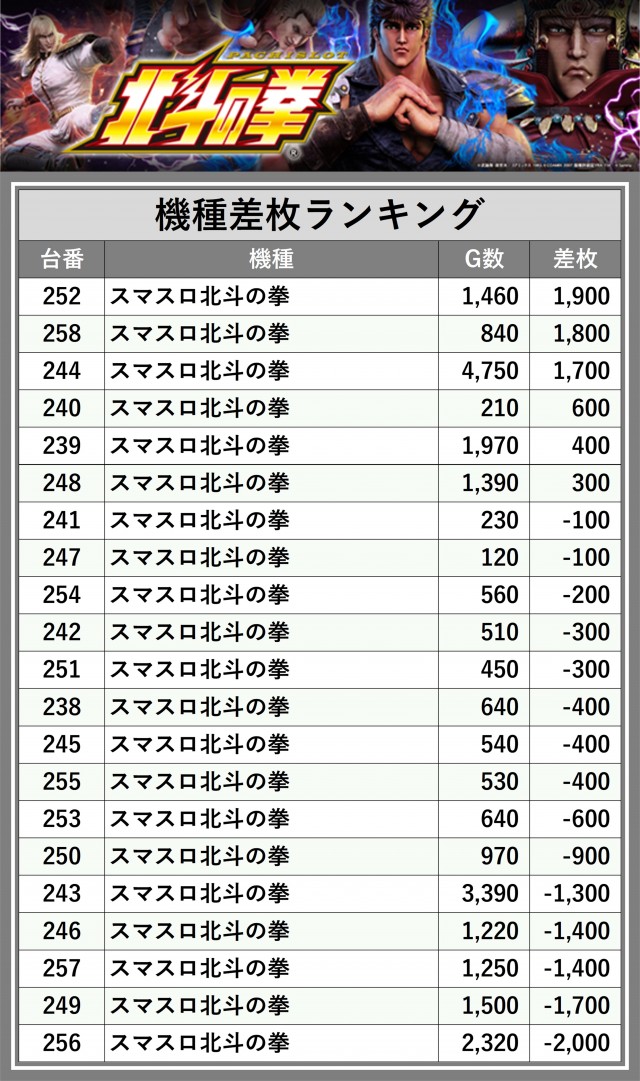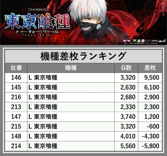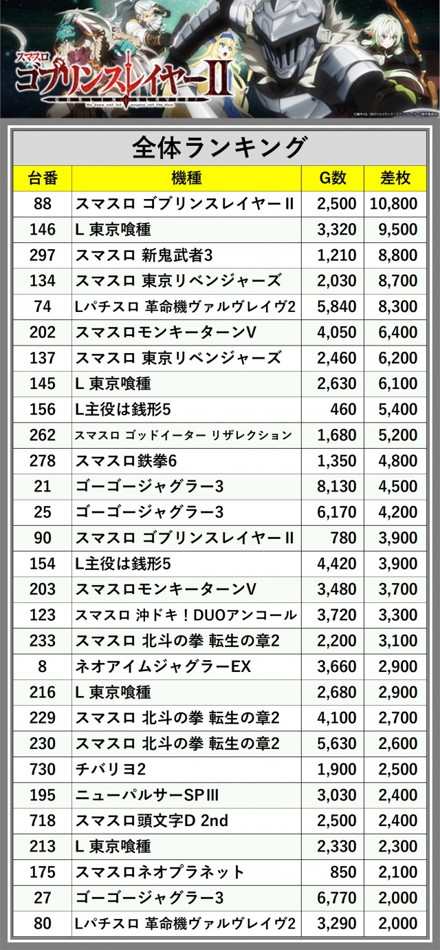 ※差枚数順に掲載しています