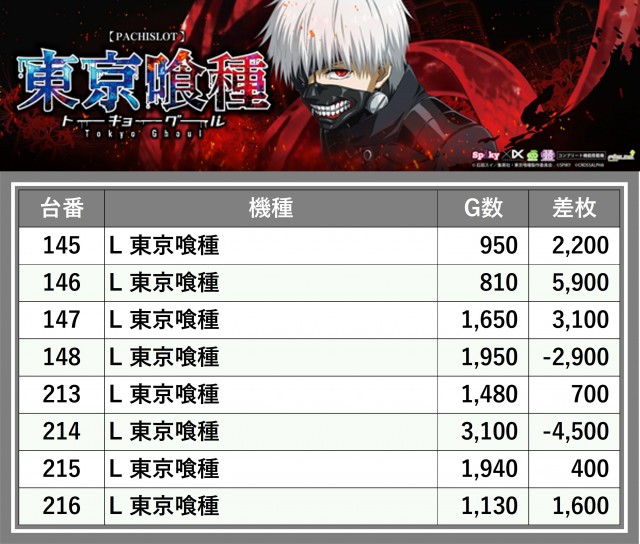 ※台番順に掲載しています