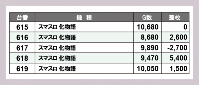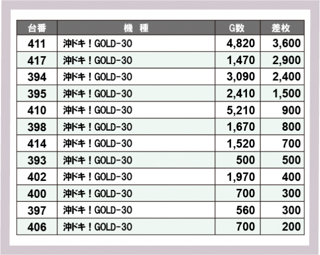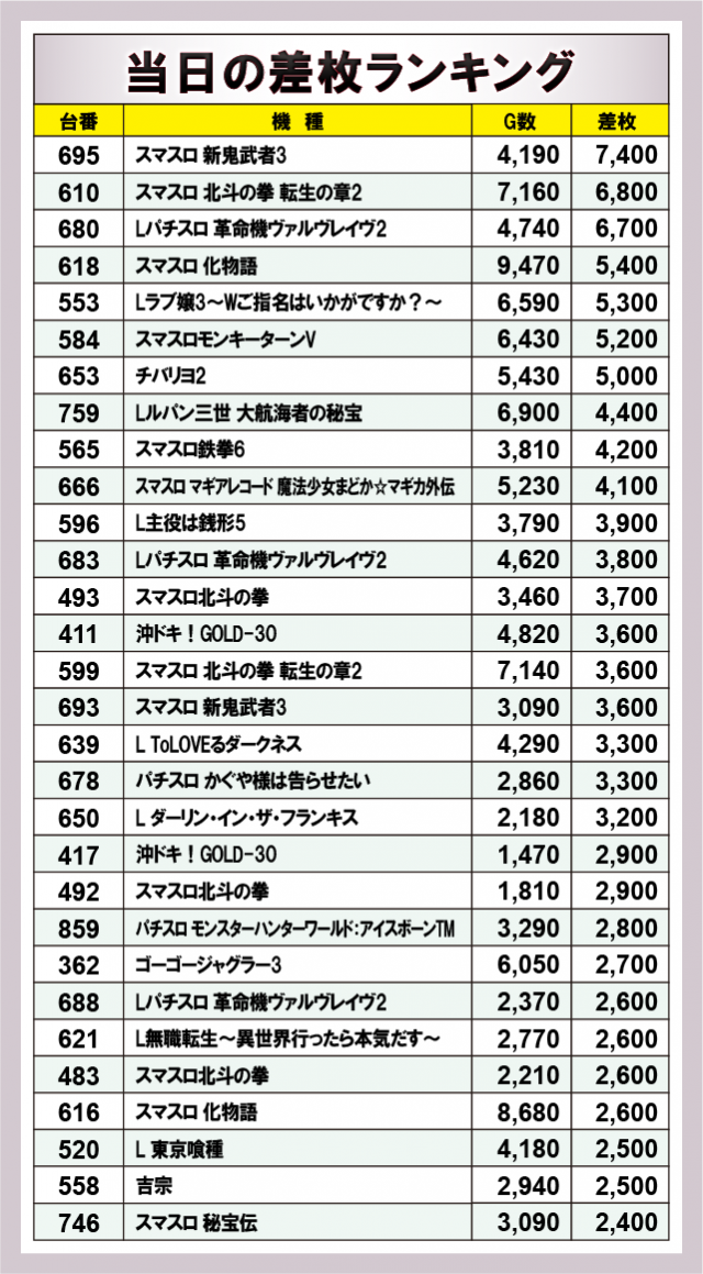 ※差枚数順に掲載しています