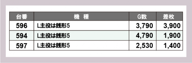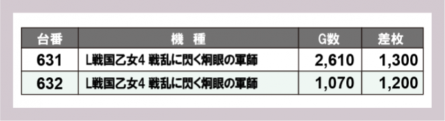 ※台番号順に掲載しています