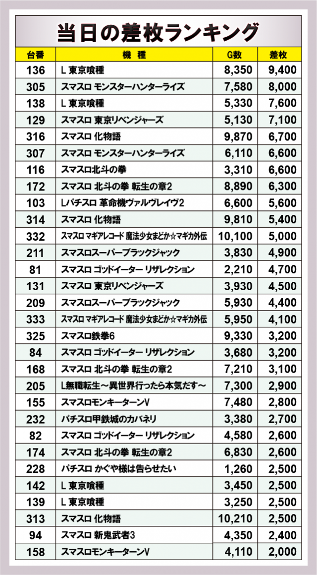 ※記事内の差枚表記はぱちタウン独自調査に基づくものです。ご了承ください。