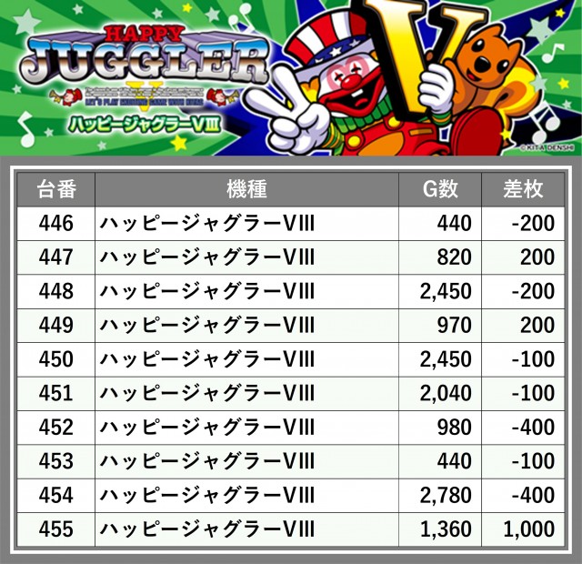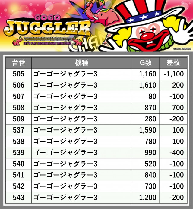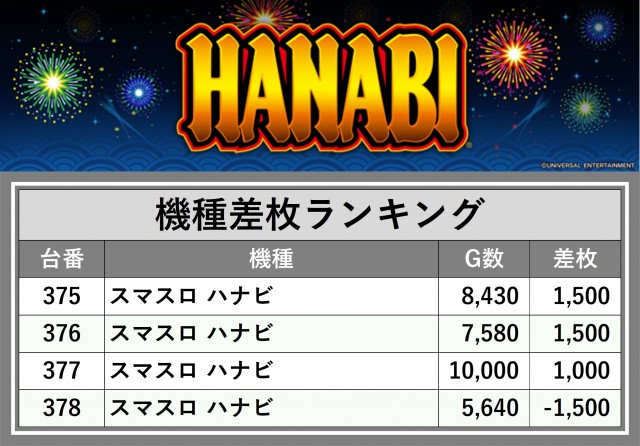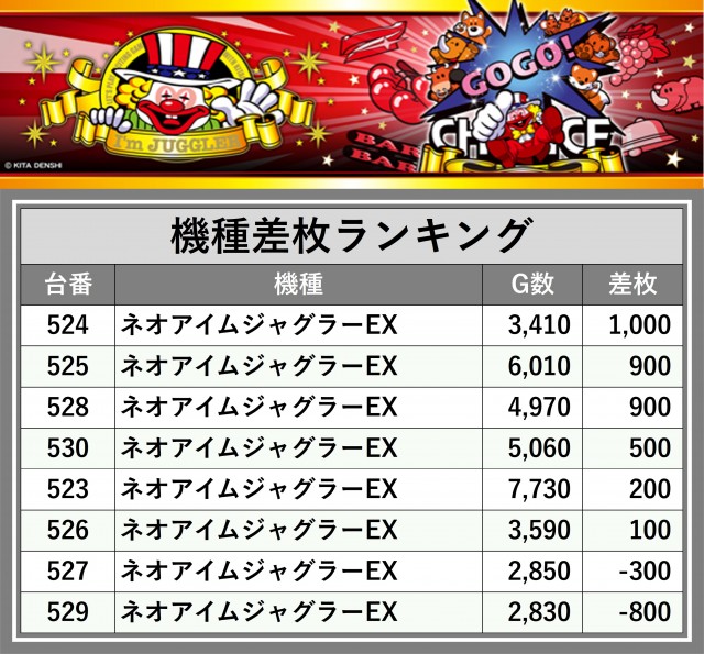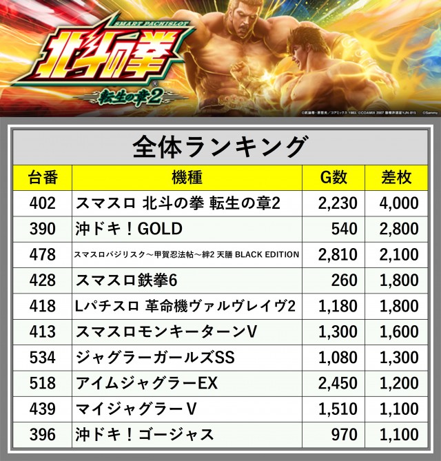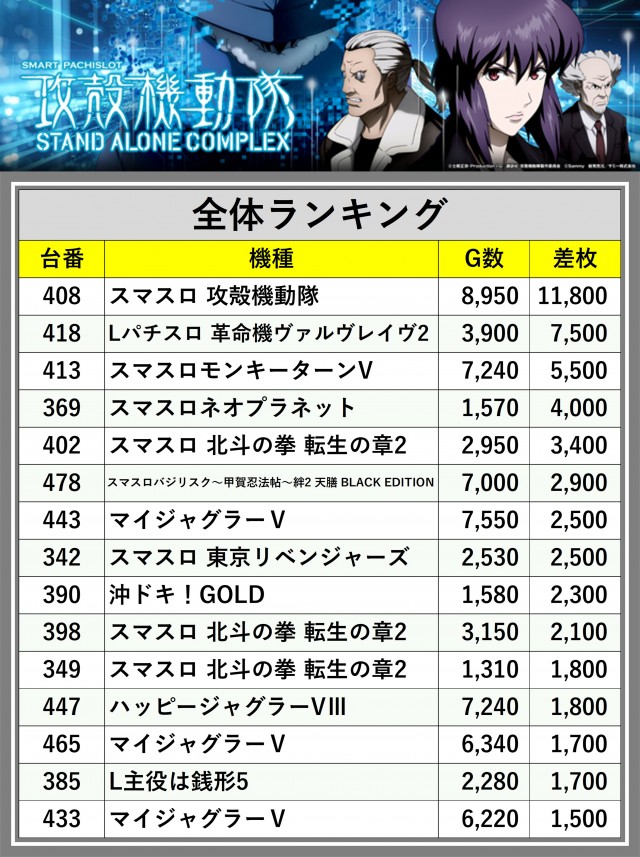 ※差枚数順に掲載しています