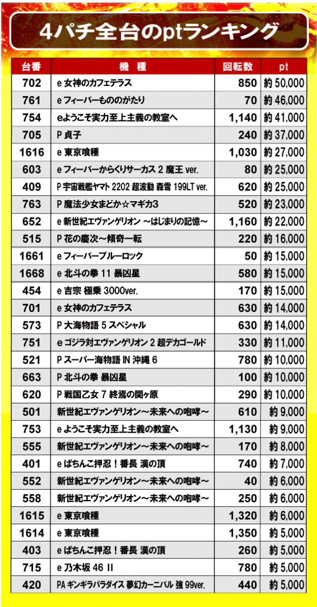 ②4パチ全台のptランキング