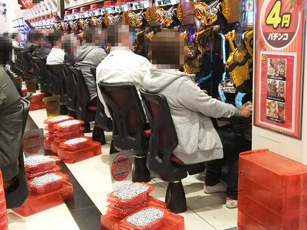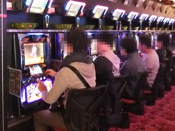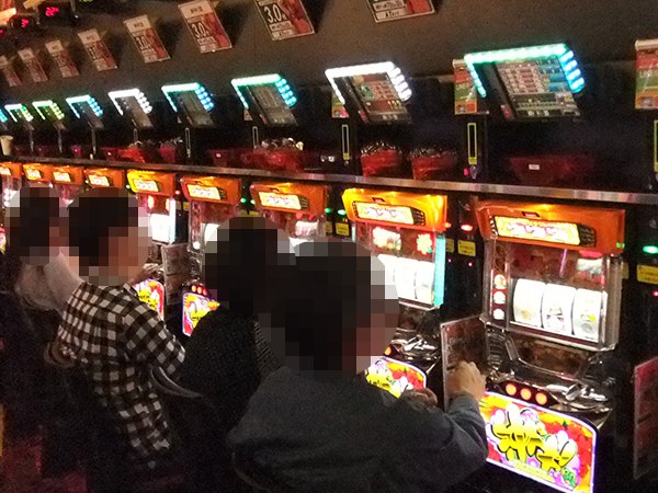 14時半過ぎの4円パチンコでは、「CRスーパー海物語IN沖縄4」が高稼働。プレイヤーたちは心から遊技を楽しんでいるようだった。