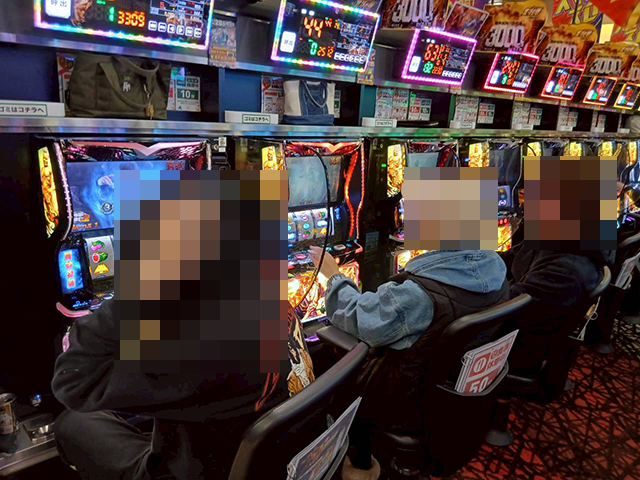 プレイヤーたちは笑顔で遊技をおこなっており、2,000pt以上や6,000pt以上を記録している台があった。
