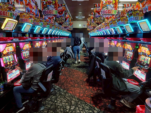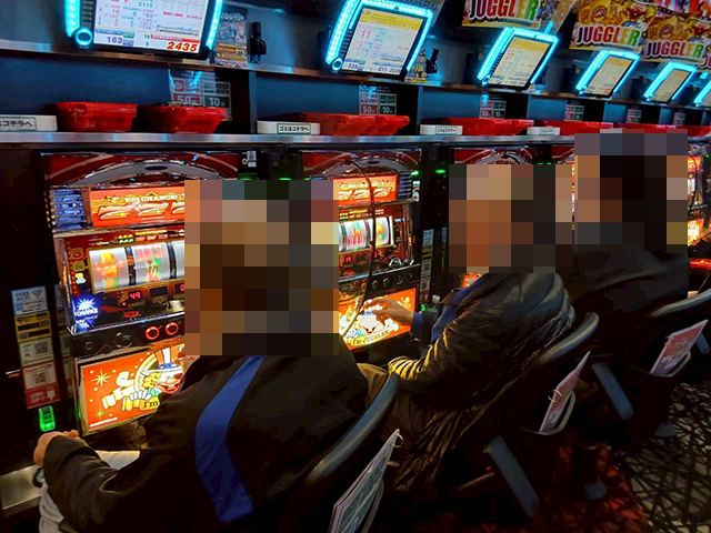 「ネオアイムジャグラーEX」にも笑顔が輝いてみえる台があり、充実した時間を過ごしていることがうかがえた。