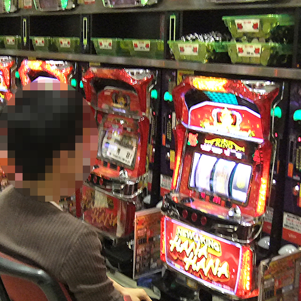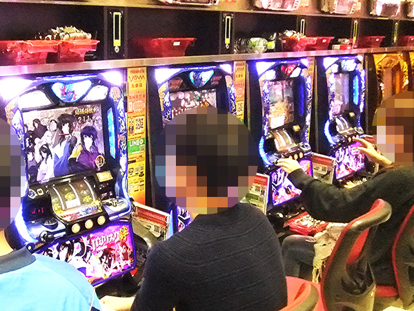 20円パチスロをチェックすると、朝に引き続き「バジリスク~甲賀忍法帖~絆」が大盛り上がり。機種のポテンシャルを発揮しているプレイヤーの姿もあり、シマ全体から活気が感じられた。