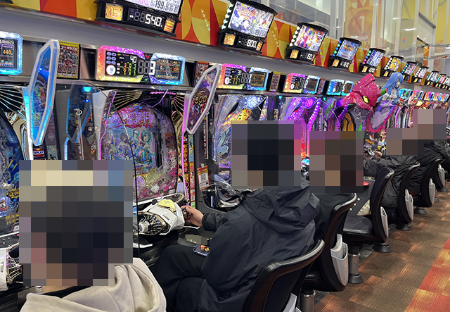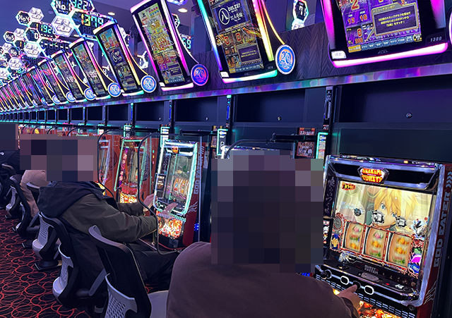 多彩な機種が支持されており、多くのプレイヤーがじっくりと遊技を楽しんでいた。
