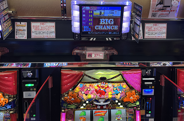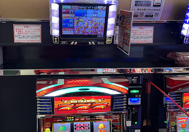 取材時にボーナス回数が40回以上の台があった「マイジャグラーⅤ」。