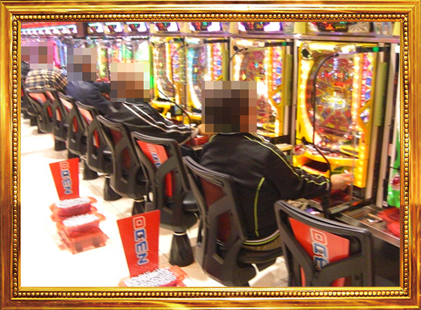 13時半を過ぎた頃の20円パチスロでは、ボーナスタイプがひときわ目立つ存在となっていた。