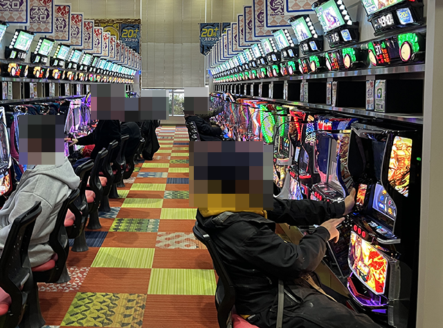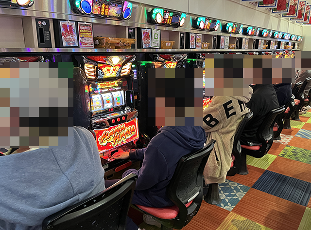 2月1日のホールでは、多くのプレイヤーが笑顔で遊技をおこなっていた。