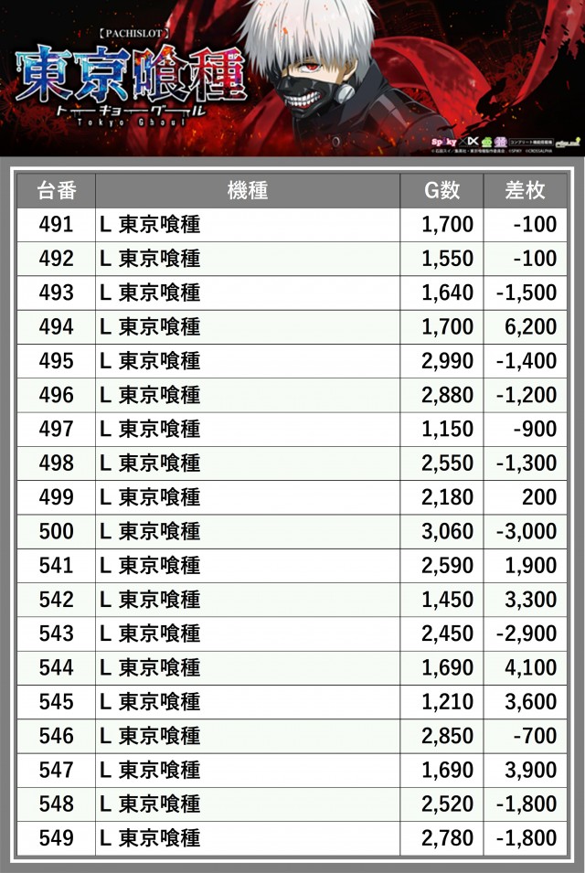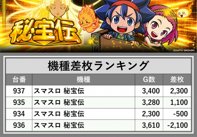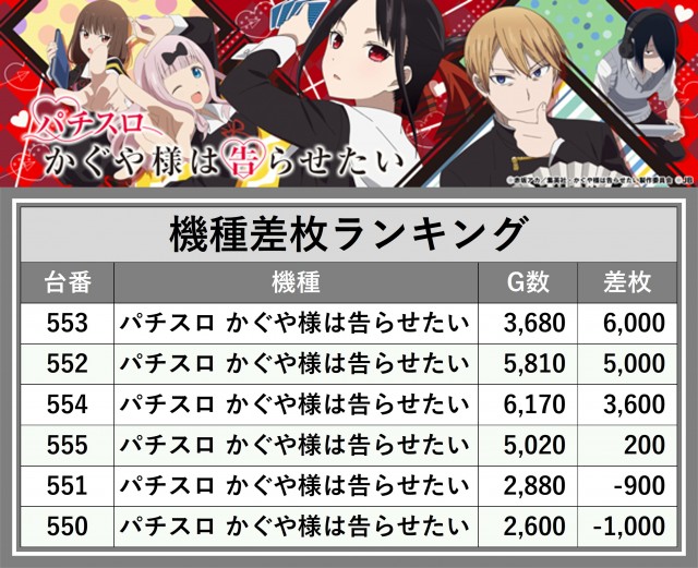 ※差枚数順に掲載しています
