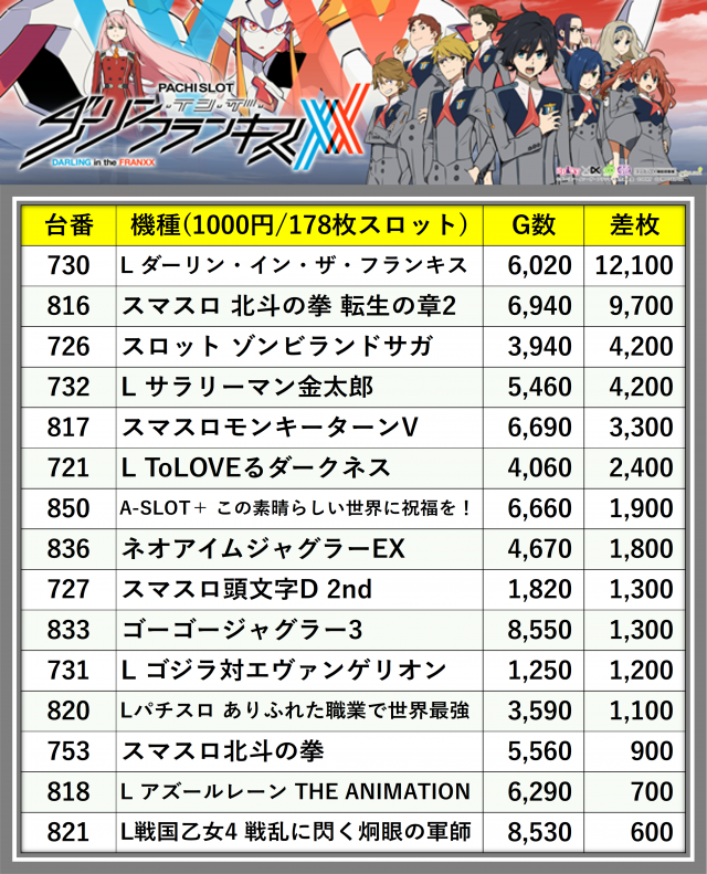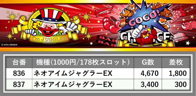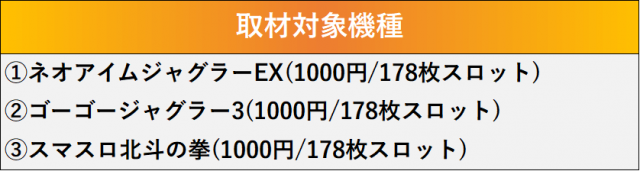 厳選された取材対象機種をはじめ、その他スロット全体から好記録が飛び出した!プレイヤーが楽しんだ1日を下記データにて振り返ってみて欲しい。