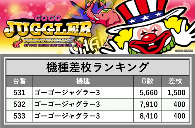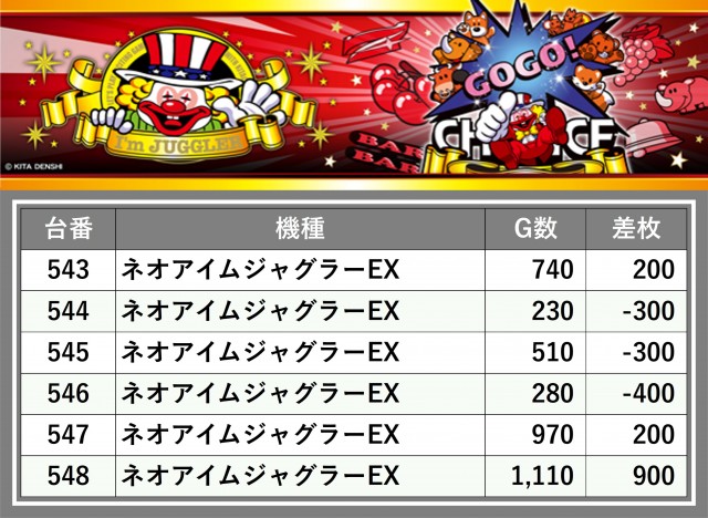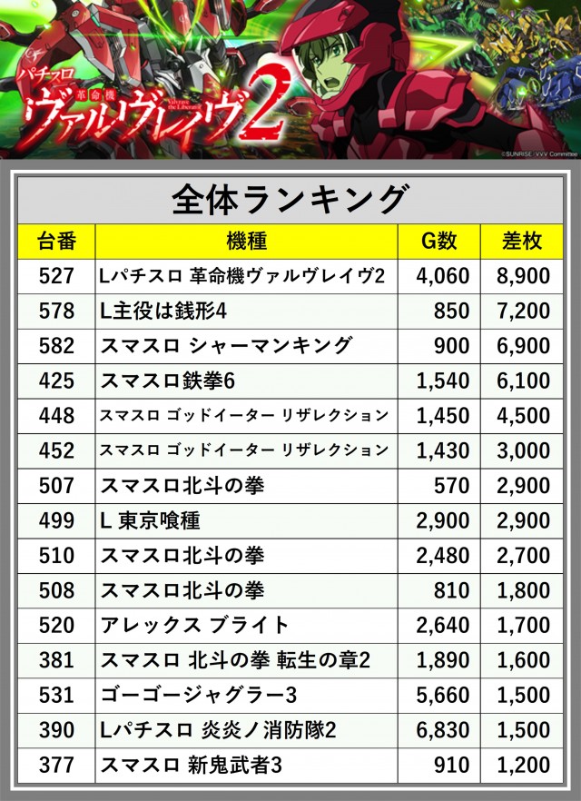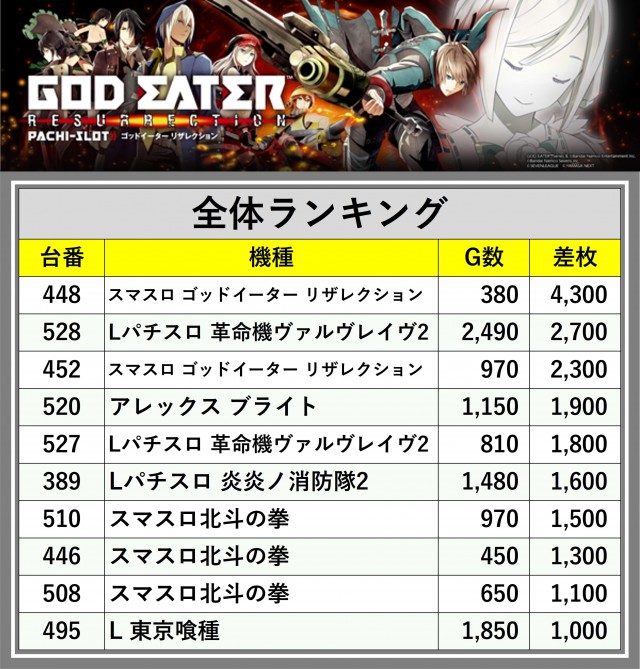 厳選された取材対象機種をはじめ、その他スロット全体から好記録が飛び出した!プレイヤーが楽しんだ1日を下記データにて振り返ってみて欲しい。