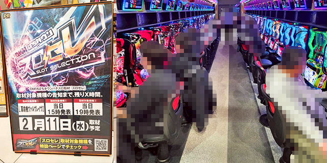 2月11日(水)ニューダイヤ塩山店にて、DMMぱちタウンの新感覚取材「スロセレ」を実施。