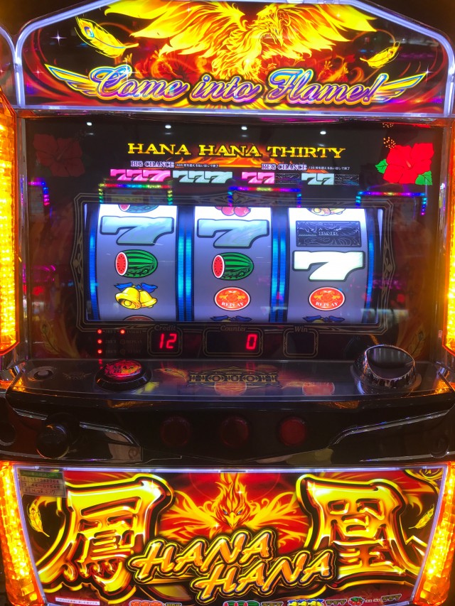 お昼過ぎともなると稼働はすこぶる高く、優秀な台は空いていなかったのですが、まだ可能性がありそうな『ハナハナ鳳凰-30』を発見。