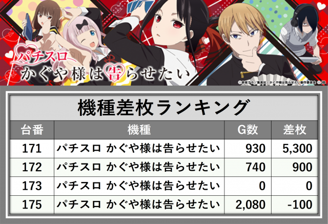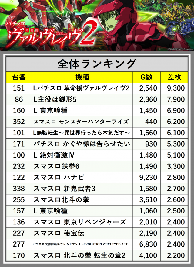 ※差枚数順に掲載しています